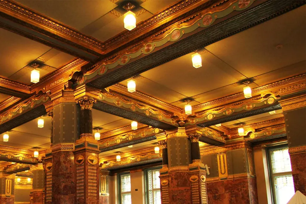 Having been a dillapidated beauty, this institute underwent a major transformation, and now it prouds itself with its original shine. Speaking of shine, the building was equipped with beautiful, elaborate brass lamps which sadly no one took care of for decades.